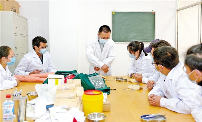 圖為西藏藏醫(yī)藥大學援藏教師遲德財(中)在給學生授課。