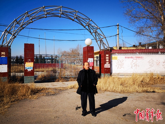 杜潤(rùn)拴站在原崇實(shí)中學(xué)校門口。江山 攝
