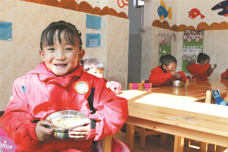 幼兒園學生吾金松吉說:“以前我家離學校很遠,走路要三個小時,平時爸爸騎摩托車送我上學都要一個小時。搬到這里后,學校離家很近,走路幾分鐘就到了,很方便,也很安全?!?/p>