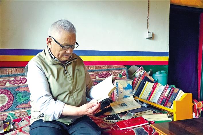 圖為洛桑公覺(jué)在翻閱資料。段敏 攝