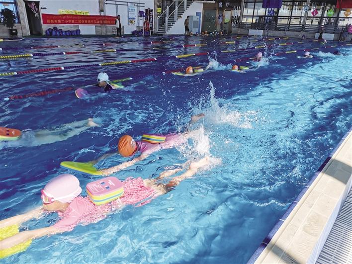 小學(xué)生游泳培訓(xùn)現(xiàn)場。