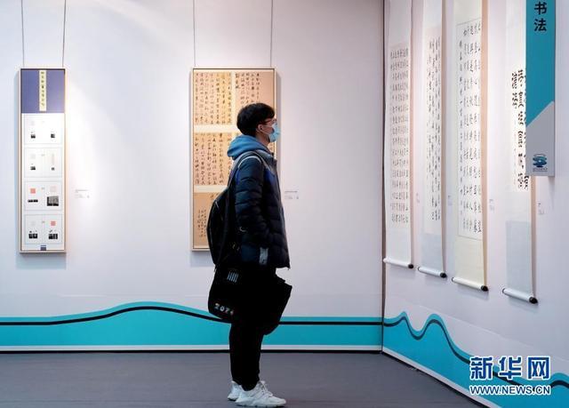 12月15日,一名參觀者在欣賞大學(xué)生書法作品。新華社記者 劉穎 攝