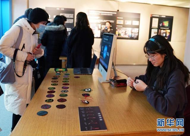12月15日,觀眾在參觀上海大學(xué)可穿戴技術(shù)與中國非遺刺繡創(chuàng)新實(shí)驗(yàn)工作坊項(xiàng)目。