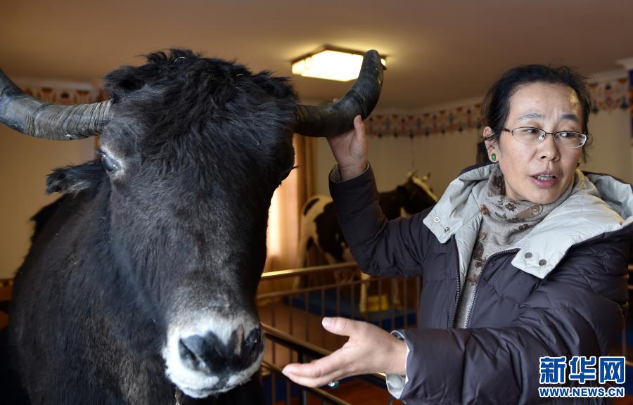 2019年2月28日,在西藏自治區(qū)農(nóng)科院畜科所,姬秋梅利用牦牛標(biāo)本講解牦牛生長特點。1988年,姬秋梅從西藏民族學(xué)院(現(xiàn)西藏民族大學(xué))農(nóng)牧系畢業(yè),被分配到西藏自治區(qū)農(nóng)科院畜科所,從事牦牛研究工作,后在中國科學(xué)院地理科學(xué)與資源研究所繼續(xù)深造,并出國留學(xué)獲得博士學(xué)位,2002年歸國。新華社記者 覺果 攝
