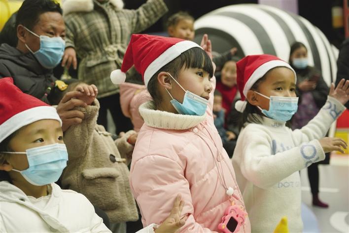 旋轉(zhuǎn)木馬、淘氣堡、滑梯……7歲的丹增達(dá)色玩得小臉紅撲撲,她告訴記者,這是她第一次來第三極歡樂世界,能和這么多小伙伴一起玩耍,真得很開心。“今天有這么多叔叔阿姨們陪我們一起唱歌、跳舞,還送了我們小禮物,我很喜歡。”丹增達(dá)色笑著說。