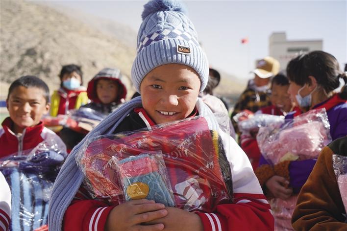 2020年12月31日,阿里巴巴天天正能量聯(lián)合西藏商報開展的2020“針心針意”大型暖冬公益行動,在愛心人士們的大力支持下,圓滿畫上了句號。工作人員趕在新年前,將愛心物資分別送往山南市浪卡子縣倫布雪鄉(xiāng)蘇格村蘇格小學(xué)、山南市貢嘎縣森布日搬遷地、拉薩市當(dāng)雄縣5個村幼兒園,為孩子們送上愛心物資。孩子們戴上愛心人士們親手編織的圍巾、帽子和手套,綻放出燦爛的笑容,溫暖了這個冬天。