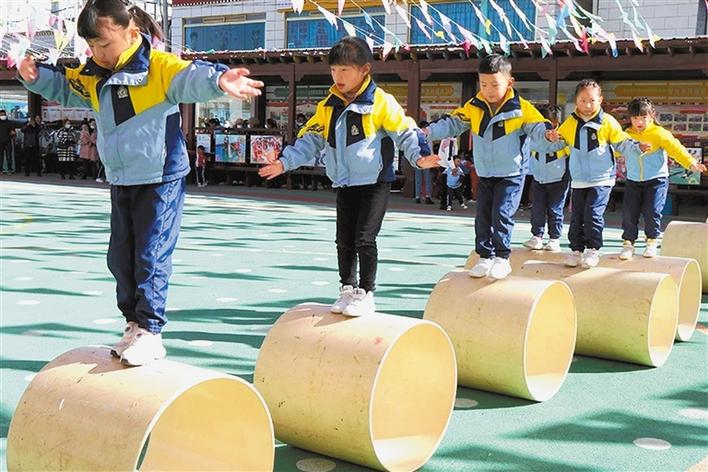 圖為山南市實(shí)驗(yàn)幼兒園的孩子在表演滾輪節(jié)目。巴桑旺姆 攝
