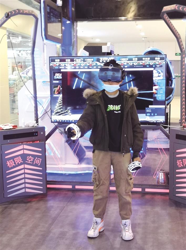 圖為寒假期間,一個(gè)小男孩正在體驗(yàn)VR游戲的樂(lè)趣。 鄭璐 袁海霞 攝