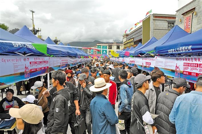 拉薩市農(nóng)牧民轉(zhuǎn)移就業(yè)促增收大型專場(chǎng)招聘會(huì)現(xiàn)場(chǎng)。