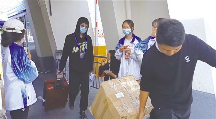 據(jù)迎新工作人員介紹,新生入校后,黨員志愿服務(wù)隊(duì)會(huì)對(duì)新生進(jìn)行身份核驗(yàn)、測(cè)體溫,學(xué)生志愿服務(wù)隊(duì)會(huì)幫新生將行李搬運(yùn)至新生報(bào)到處,新生在報(bào)到處辦理好入學(xué)手續(xù)后,志愿服務(wù)隊(duì)的工作人員還會(huì)負(fù)責(zé)將學(xué)生行李搬運(yùn)至新生宿舍。