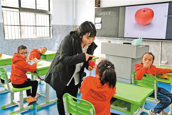 拉薩市特殊學(xué)校的老師通過圖片、實(shí)物讓孩子們認(rèn)知水果?!∮浾摺√票蟆〉ぴ鋈号唷z