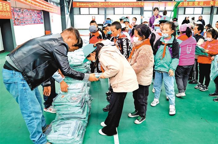 日前,一批由江蘇揚州太陽雨愛心志愿者團隊125名愛心人士捐贈的價值3萬多元的522個愛心書包,送到了西藏山南市錯那縣曲卓木鄉(xiāng)小學的學生手中?;顒由罨藘傻厝嗣竦挠颜x,鑄牢了中華民族共同體意識。