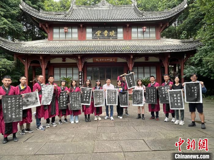 上香、祭文、行祭拜禮……在三蘇祠,臺灣大學(xué)生穿上漢服開展了祭拜活動,深入了解了中國傳統(tǒng)文化和禮儀。同時,在趣味拓片活動中,不少學(xué)生做了“但愿人長久,千里共嬋娟”字樣的拓片,表達了對中秋佳節(jié)的美好祝福。