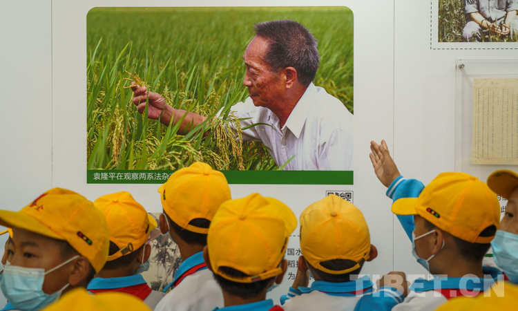 一張張照片中,一位正在觀察水稻的老人學生們幾乎都認識。“我知道袁隆平爺爺,是他讓人們不再餓肚子?!薄半m然現(xiàn)在糧食產量增加了,但我們還是要記住不能浪費糧食。” 學生們你一言我一語爭相發(fā)言。