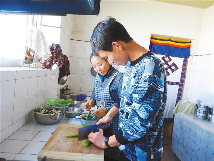 “媽媽,你坐一會(huì)兒,我來晾衣服?!眲偪忌瞎枮I職業(yè)技術(shù)學(xué)院醫(yī)學(xué)護(hù)理專業(yè)的大一新生吳堅(jiān),一把搶過德慶卓嘎手里的床單晾在了院中,在遼陽職業(yè)技術(shù)學(xué)院就讀的大二學(xué)生旺青格列也默默地整理著弟弟們的房間。