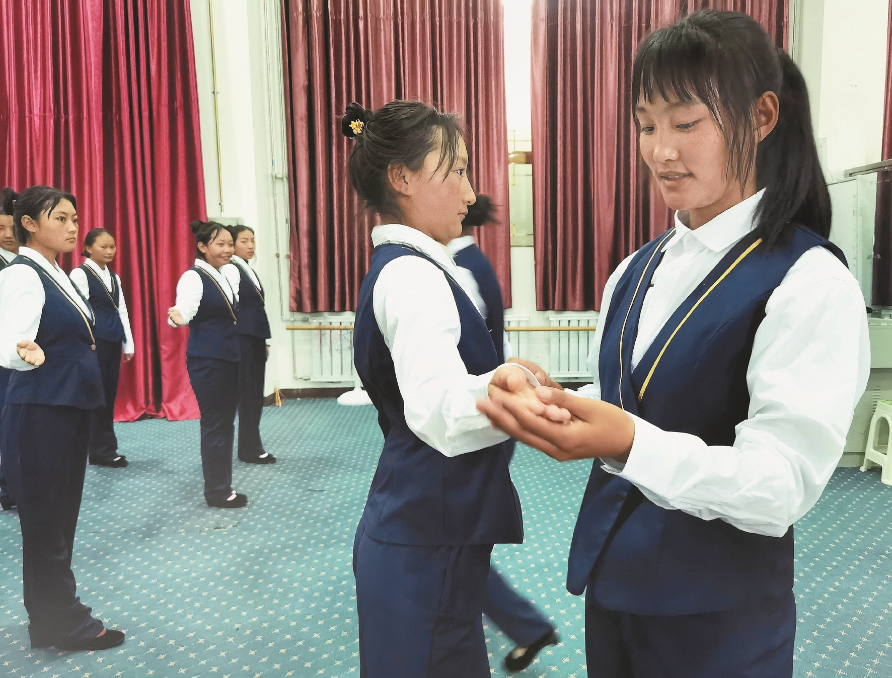 圖為拉薩二職正在對學(xué)生進行服務(wù)業(yè)從業(yè)人員培訓(xùn)。拉薩融媒記者 凃 瓊攝