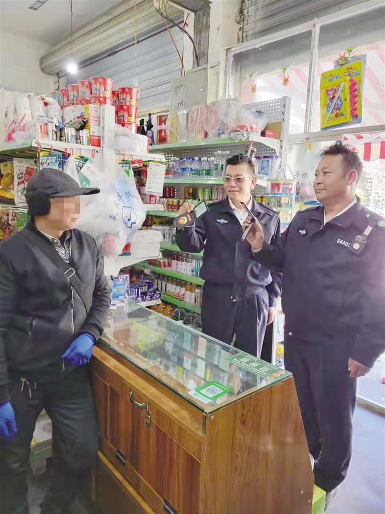 拉薩市煙草專賣局執(zhí)法人員向當事人出示執(zhí)法證件。 圖由拉薩市煙草專賣局提供