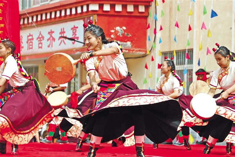 上午十一時,活動準時舉行。在卡若區(qū)藝術(shù)團帶來的開場舞蹈《彩袖舞出幸福》澎湃的音樂聲中,“三下鄉(xiāng)”集中示范活動正式拉開了帷幕。