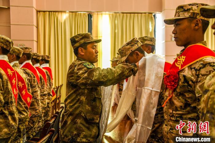 圖為為入伍新兵獻哈達?!≈斐?攝