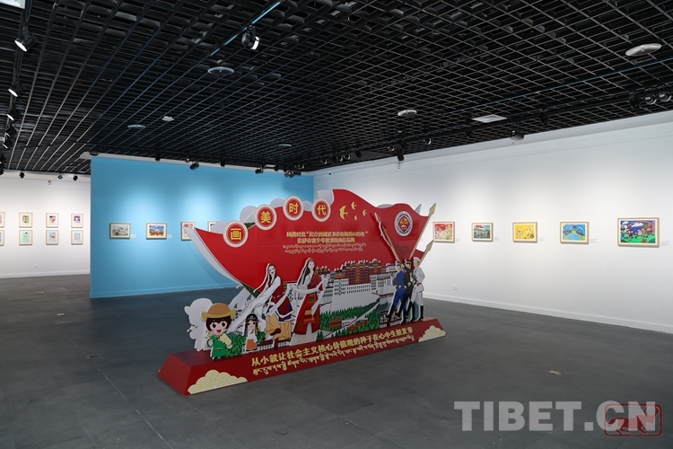 圖為畫美時(shí)代——“紀(jì)念西藏百萬(wàn)農(nóng)奴解放63周年”拉薩市青少年優(yōu)秀繪畫作品展現(xiàn)場(chǎng)