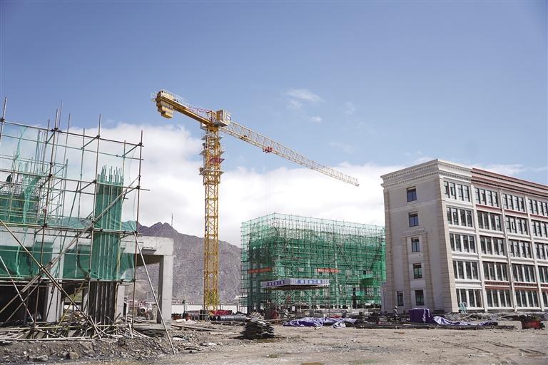 16日,記者在施工現(xiàn)場看到,拉薩市實(shí)驗(yàn)小學(xué)教育城分校北面,很大一塊空地被擋板圍了起來,大型起吊機(jī)正在擋板內(nèi)來回運(yùn)轉(zhuǎn)。其中,有三棟樓已拔地而起,從外面看主體已經(jīng)竣工。