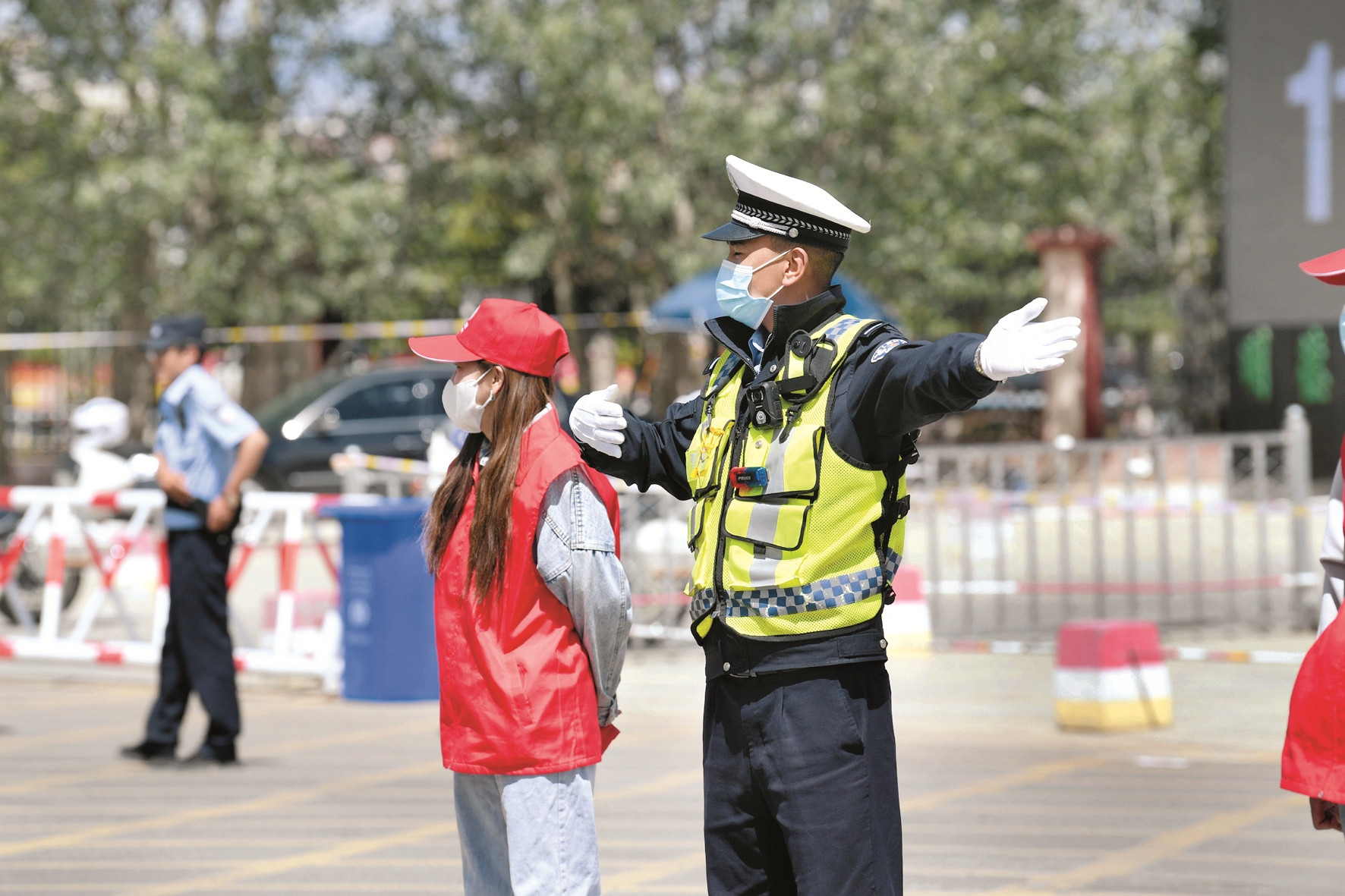 圖為拉薩交警在考點(diǎn)附近道路指揮交通。拉薩融媒記者 巴桑次仁攝