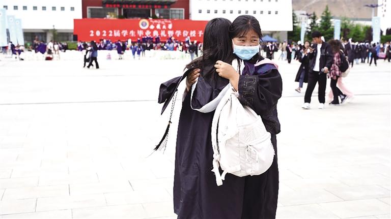 現(xiàn)場,畢業(yè)生們依依不舍。隨著西藏大學(xué)校歌的響起,該校2022屆學(xué)生畢業(yè)典禮暨學(xué)位授予儀式落下帷幕,畢業(yè)生們即將帶著自己的成長感悟離開西藏大學(xué),開始新的征程。