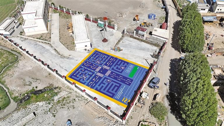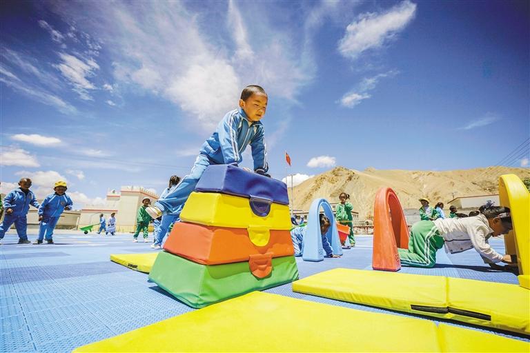 “新操場(chǎng)是我們的游樂場(chǎng)?!绷鶜q的旦增次央第一次見到新操場(chǎng)時(shí)開心極了,“在新操場(chǎng)上可以跑可以跳,還有好多新玩具,太好玩了!”