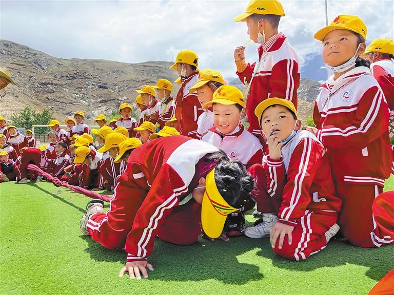 曲水縣達嘎鎮(zhèn)小學(xué)學(xué)生在體驗民族傳統(tǒng)體育項目押加。(圖片由區(qū)社體中心提供)