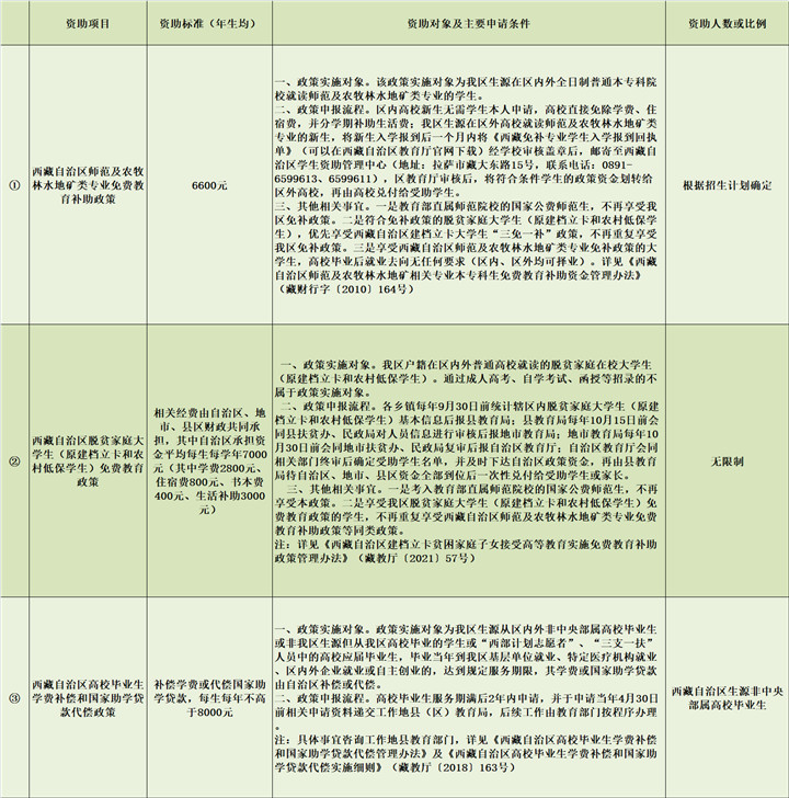 以下為西藏自治區(qū)本專(zhuān)科教育階段學(xué)生資助政策簡(jiǎn)介和服務(wù)熱線詳細(xì)情況: