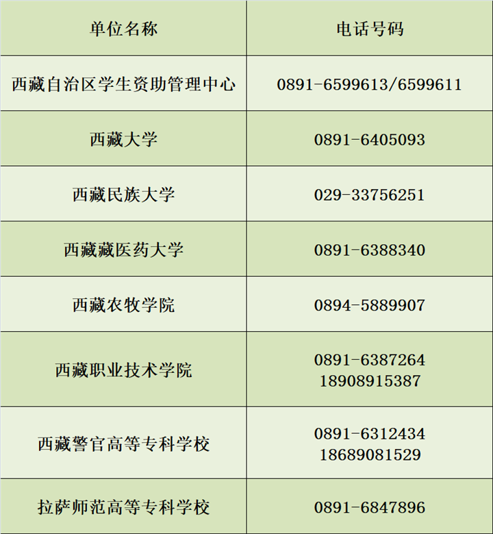 西藏自治區(qū)學(xué)生資助服務(wù)熱線號(hào)碼