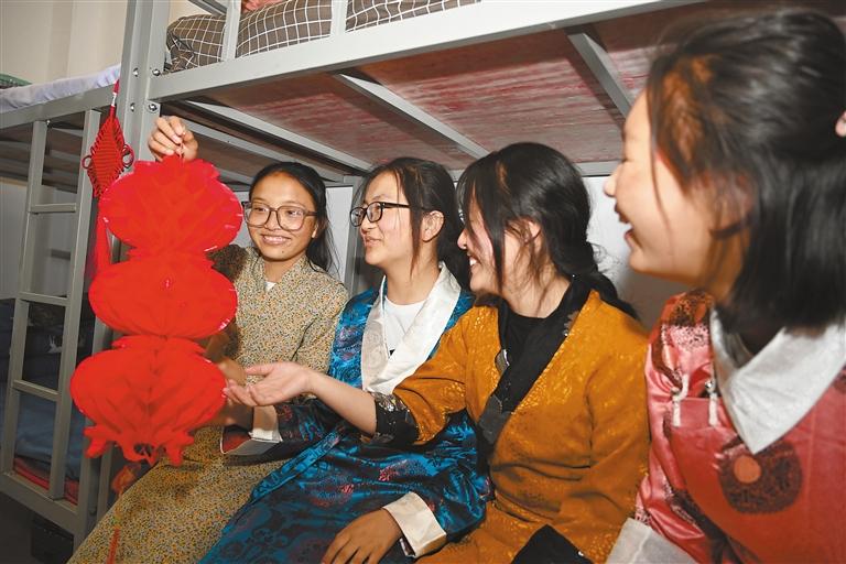 圖為西藏自治區(qū)人民政府駐格爾木辦事處中學的學生歡度藏歷新年。記者 王敏 攝