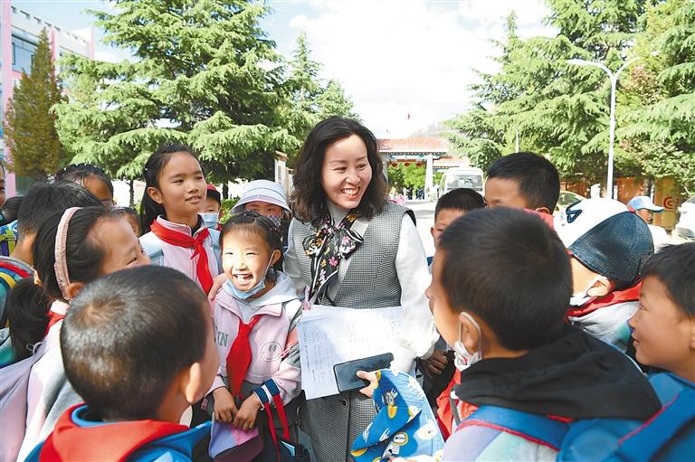 援藏教師和孩子們在一塊(拍攝地:山南市乃東區(qū)) 王志偉 攝