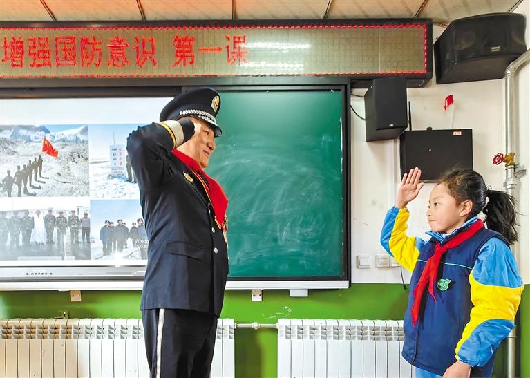 拉薩市城關(guān)區(qū)拉魯小學(xué)以“弘揚紅色文化 增強國防意識”為主題上好“開學(xué)第一課”。這是學(xué)生與宣講員索朗達杰互動。記者 袁海霞 鄭璐 攝