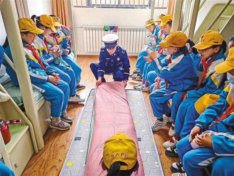 拉薩市森林消防大隊隊員在為學生講解如何使用滅火器。記者 格桑倫珠 盧文靜 攝