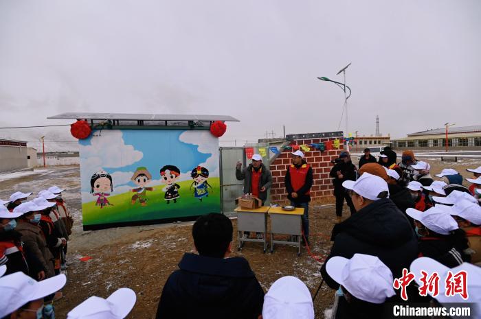 這份“禮物”約有半個標(biāo)準(zhǔn)集裝箱那么大,它的屋頂裝有幾塊太陽能光伏板,這間鐵皮小屋從杭州出發(fā),途徑安徽、河南、陜西、甘肅、青海,跋涉近4000公里來到那曲,為學(xué)校師生帶來了干凈的飲用水。