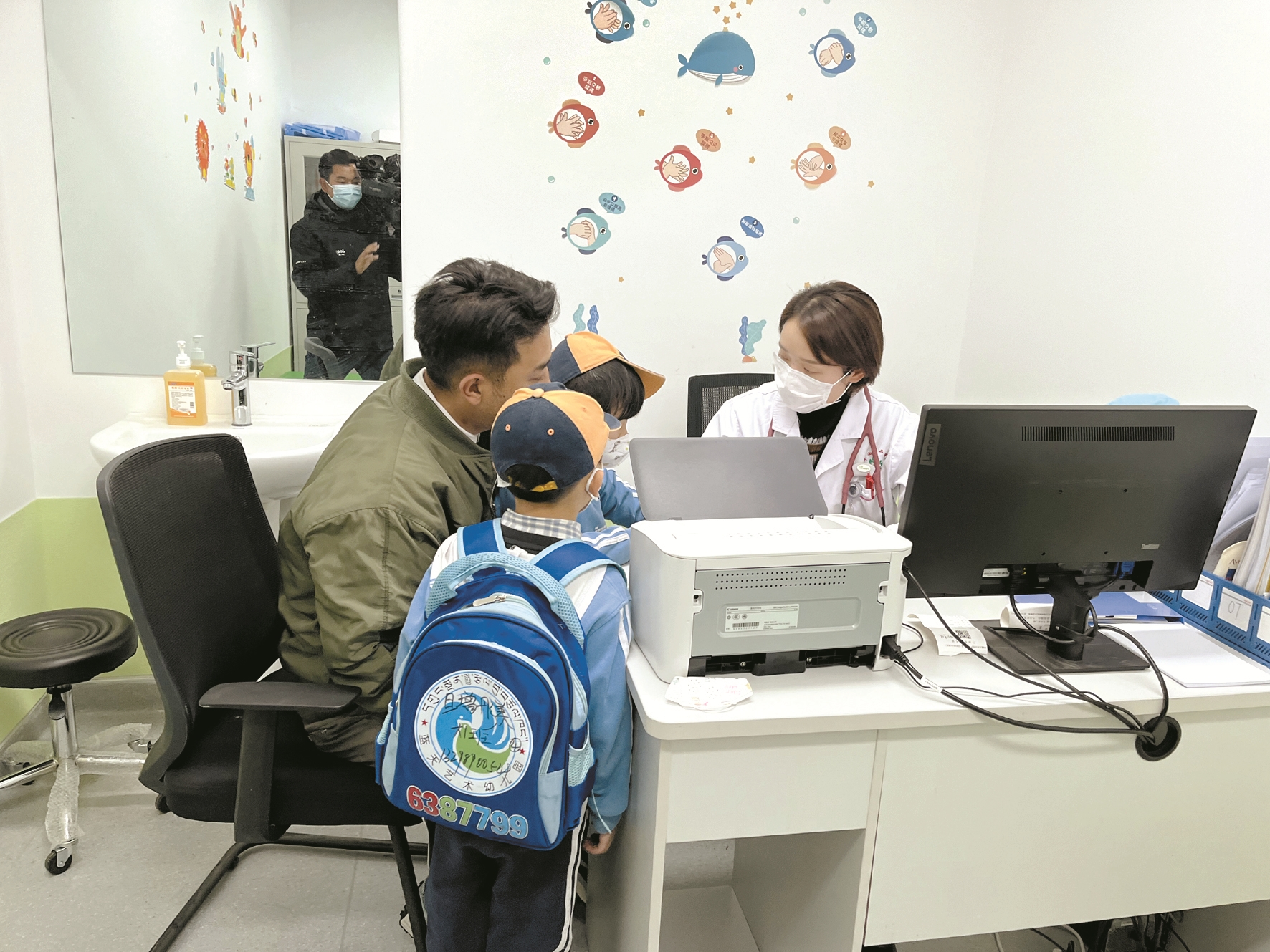圖為在義診活動中,醫(yī)生對小朋友進行檢查,并耐心詢問。 拉薩融媒記者 莫瑞英攝