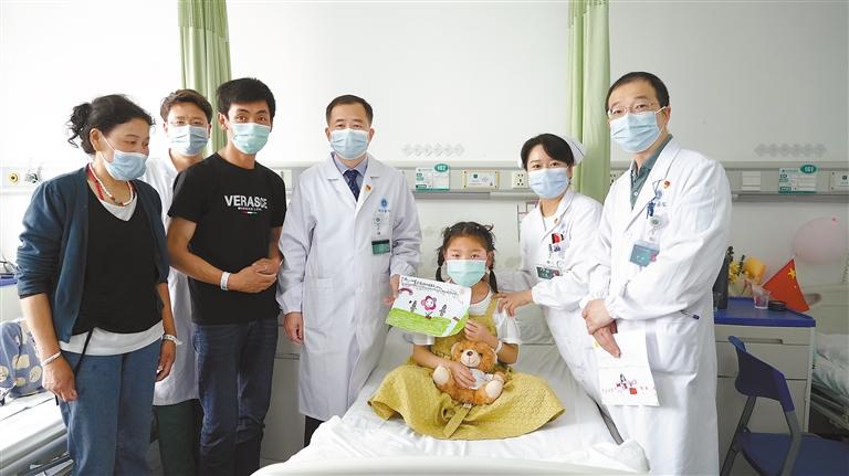 圖為武漢協(xié)和醫(yī)院醫(yī)護人員術(shù)后看望病患兒及其家屬。通訊員 衛(wèi)未 攝
