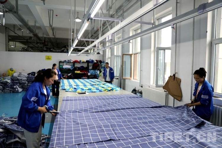 中國(guó)西藏網(wǎng)訊 6月28日,位于青海省海東市民和回族土族自治縣的青海洺欽和服飾制作車(chē)間內(nèi),電動(dòng)縫紉機(jī)的噠噠聲不絕于耳,穿著藍(lán)色制服的工人正專(zhuān)注地趕制一批中學(xué)校服。