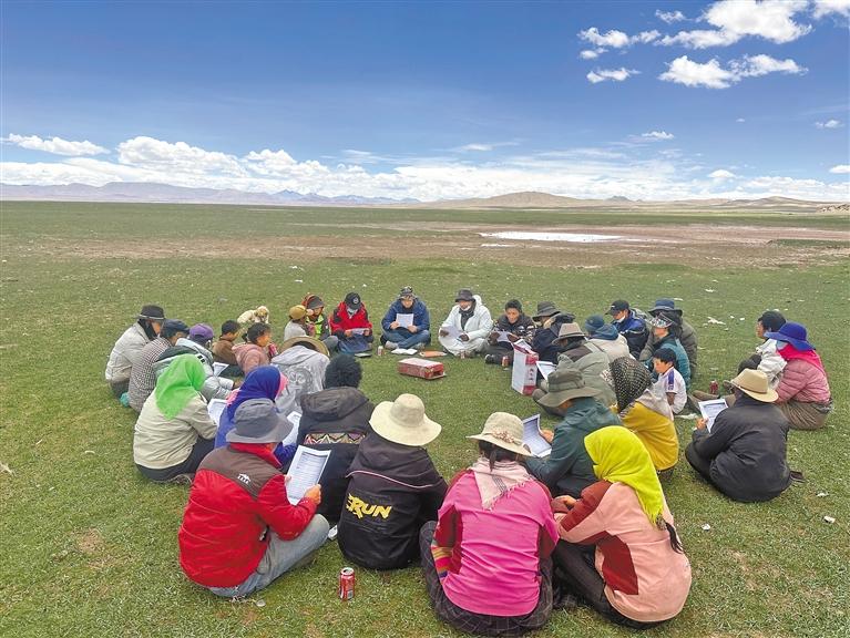 西藏自治區(qū)黨委十屆四次全會(huì)召開以來,自治區(qū)人大機(jī)關(guān)駐那曲市尼瑪縣玉加村工作隊(duì)隊(duì)員深入牧場(chǎng)宣傳會(huì)議精神,和牧民群眾話發(fā)展變化,談惠民政策,算家庭收入,以“小故事”闡釋“大道理”,將黨的好聲音、好政策傳遞到基層群眾的心坎上。