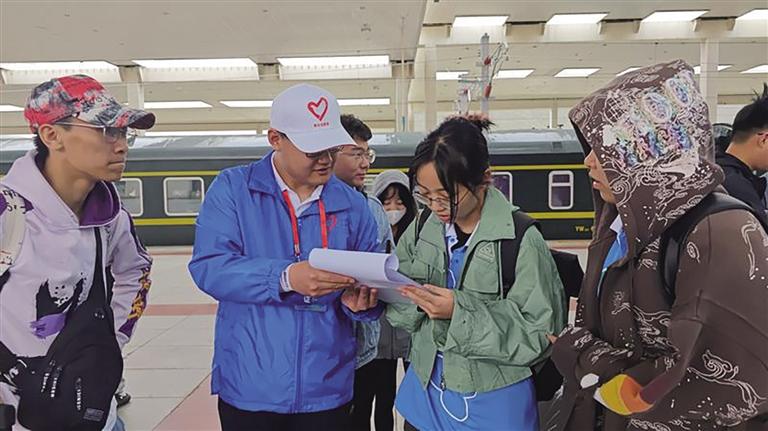 “到西部去、到基層去、到祖國和人民最需要的地方去。”7月24日,2023屆大學(xué)生西部計(jì)劃西藏專項(xiàng)志愿者陸續(xù)抵藏報(bào)到?,F(xiàn)場,共青團(tuán)西藏自治區(qū)委員會(huì)組織了前幾屆志愿者在火車站接站?!拔沂菑暮幽线^來做志愿者的,在西藏已經(jīng)2年了,一直在自治區(qū)經(jīng)信廳上班。今天是過來接學(xué)弟學(xué)妹們的,幫助他們登記報(bào)到?!表n義凡說。中午11點(diǎn)左右,火車進(jìn)站,志愿者們陸續(xù)前來報(bào)到?!斑@是我第一次來西藏,還是以志愿者的身份,我會(huì)好好工作,為西藏的發(fā)展作出自己的貢獻(xiàn)?!眮碜蕴旖虻奶锟苏f。