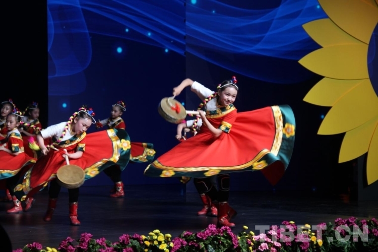 圖為熱巴舞《格?;ㄩ_(kāi)向未來(lái)》表演現(xiàn)場(chǎng) 攝影:德吉卓瑪