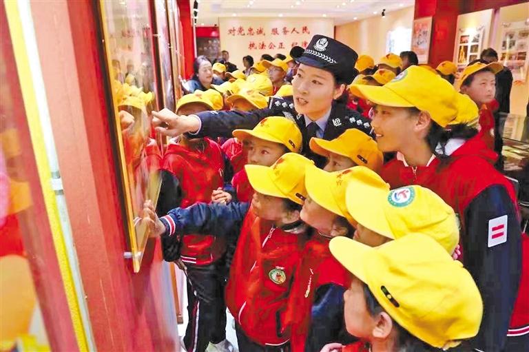 圖為陳容麗帶領(lǐng)亞?wèn)|縣小學(xué)生參觀站史館。記者 王莉 通訊員 許鵬飛 攝