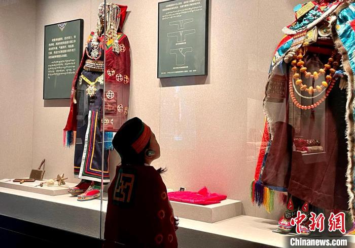 圖為穿著扎達傳統(tǒng)服飾的次仁央宗在參觀阿里博物館。拉巴卓瑪 攝