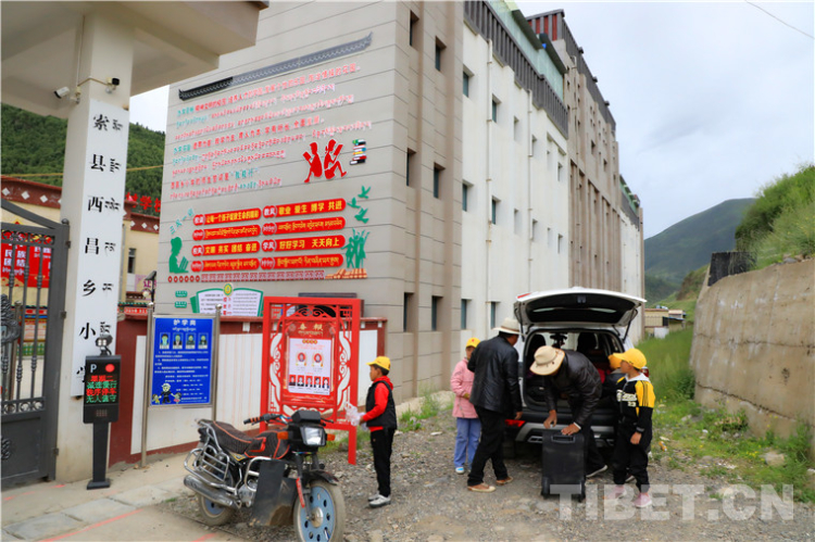 周日下午,西藏自治區(qū)那曲市索縣西昌鄉(xiāng)的校門(mén)口又熱鬧了起來(lái)。校長(zhǎng)和值班教師們?cè)缭缯驹陂T(mén)外等待返校的孩子們。