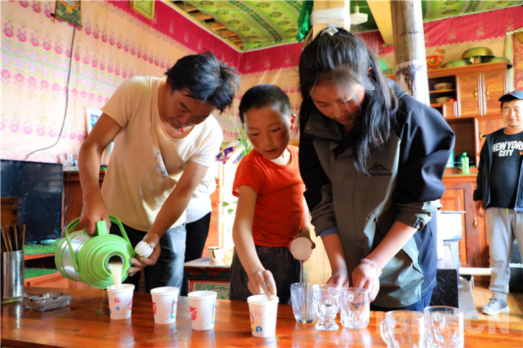 在另一戶(hù)村民家里,我們見(jiàn)到了德吉拉姆姐弟倆。姐弟倆非常有禮貌又主動(dòng)熱情地為我們準(zhǔn)備酥油茶、讓座、指路,顯然是父母的“得力小助手”。他們做起事來(lái)一板一眼、舉止落落大方,給我們留下很深刻的印象。