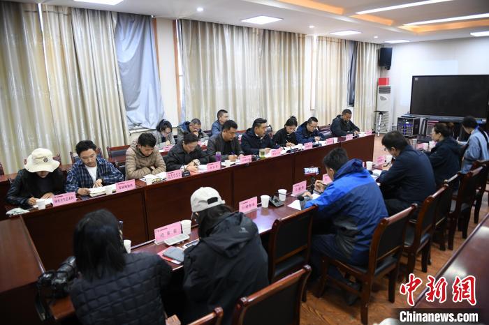 圖為那曲市教育局相關(guān)負責(zé)人與媒體記者展開座談交流會。貢嘎來松 攝