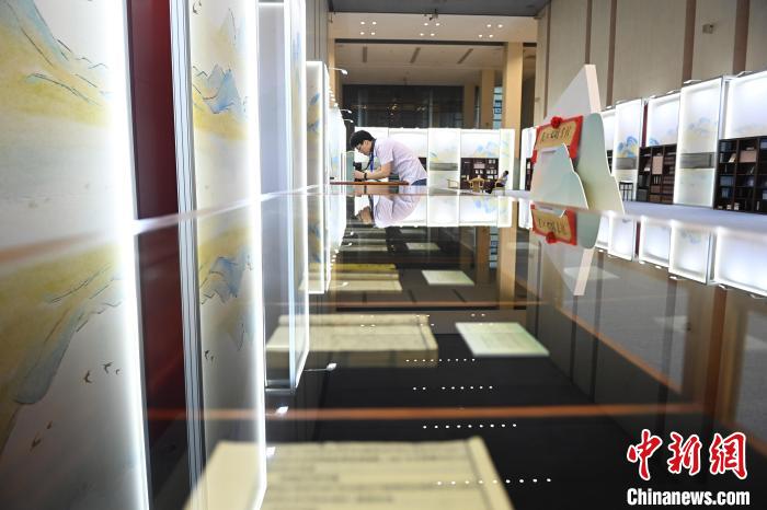 9月12日,長江文明書館在重慶設(shè)展陳,圖為展出的古籍。中新網(wǎng)記者 陳超 攝