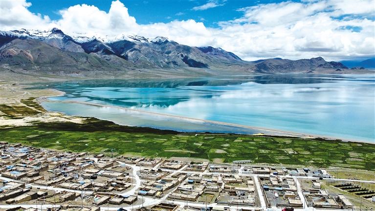 主題教育開展以來,西藏各級(jí)各部門深入貫徹落實(shí)習(xí)近平生態(tài)文明思想,著力創(chuàng)建國家生態(tài)文明高地取得顯著成效。這是那曲市尼瑪縣文布北村,當(dāng)穹錯(cuò)碧藍(lán)清亮的湖水與湖畔的村落相映,構(gòu)成了一幅人與自然和諧共生的美麗畫卷。(無人機(jī)拍攝) 記者 趙書彬 攝