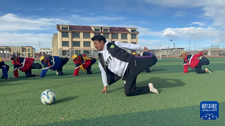 10月13日,在西藏那曲市班戈縣中石化小學(xué),學(xué)生跟隨老師在操場(chǎng)上做運(yùn)動(dòng)。新華社發(fā)(孔琳琳 攝)
